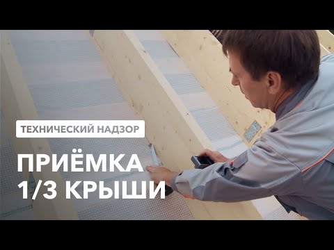 Инженер визуально оценивает качество подшивной доски, проверяет наличие вентиляционного зазора, проклейку ветрозащитной мембраны по краю. На этом этапе уже установлены водостоки, мансардные окна — можно оценить качество монтажа, гидроизоляцию стыков, водоотводящих планок. Изнутри проверяем прокладку утеплителя, отсутствие зазоров на стыках.